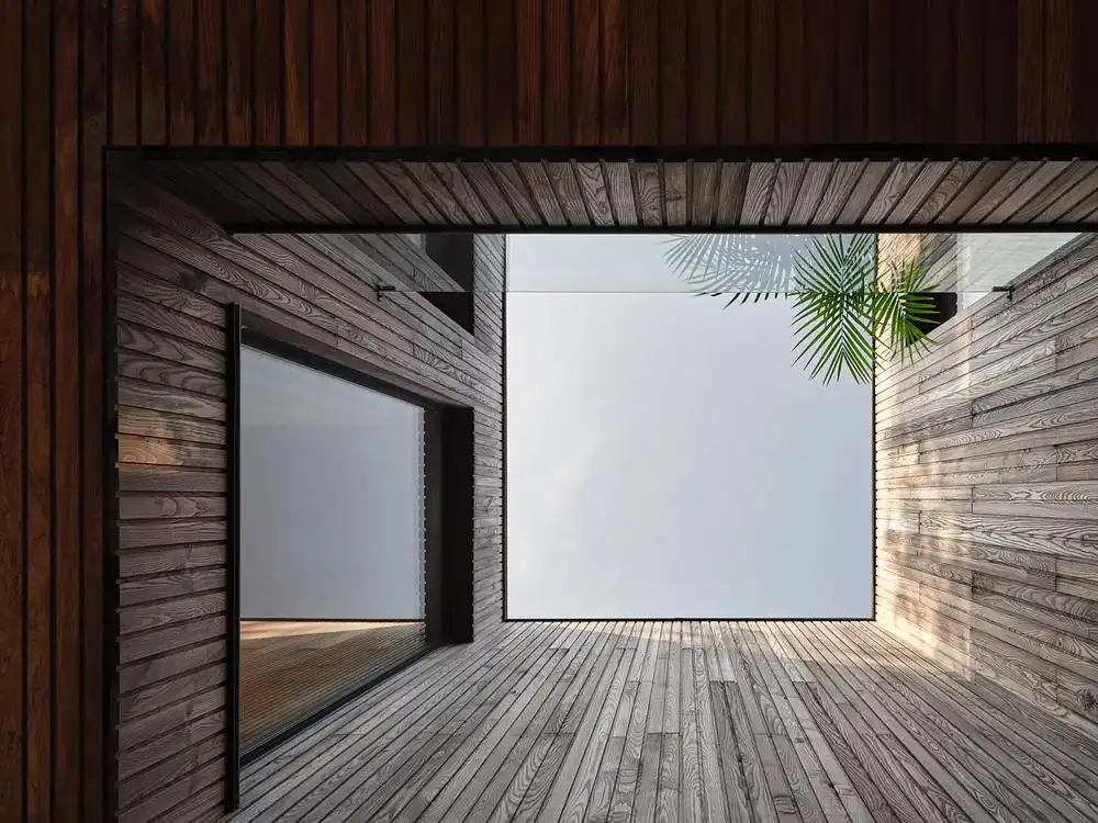 Intersections and subtractions between these elements generate sectional depth, cross-views, and a calibrated distribution of light. A centrally located painting studio was developed collaboratively with the owner through iterative studies and virtual light simulations, resulting in a north-facing clerestory and a radiused ceiling that produces even, controlled daylight.