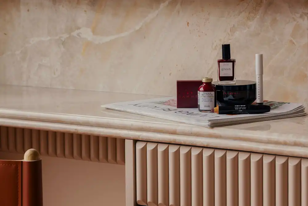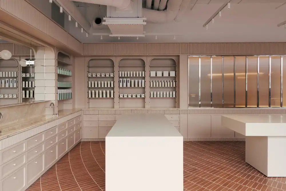 Such gestures allow Living Beauty to celebrate a relevant typology of the past through modern design thinking. By invoking lessons of the apothecary and rethinking them anew, the space asserts a distinctly contemporary character, engaging in a critical dialogue around aesthetics, function, and spatial values.