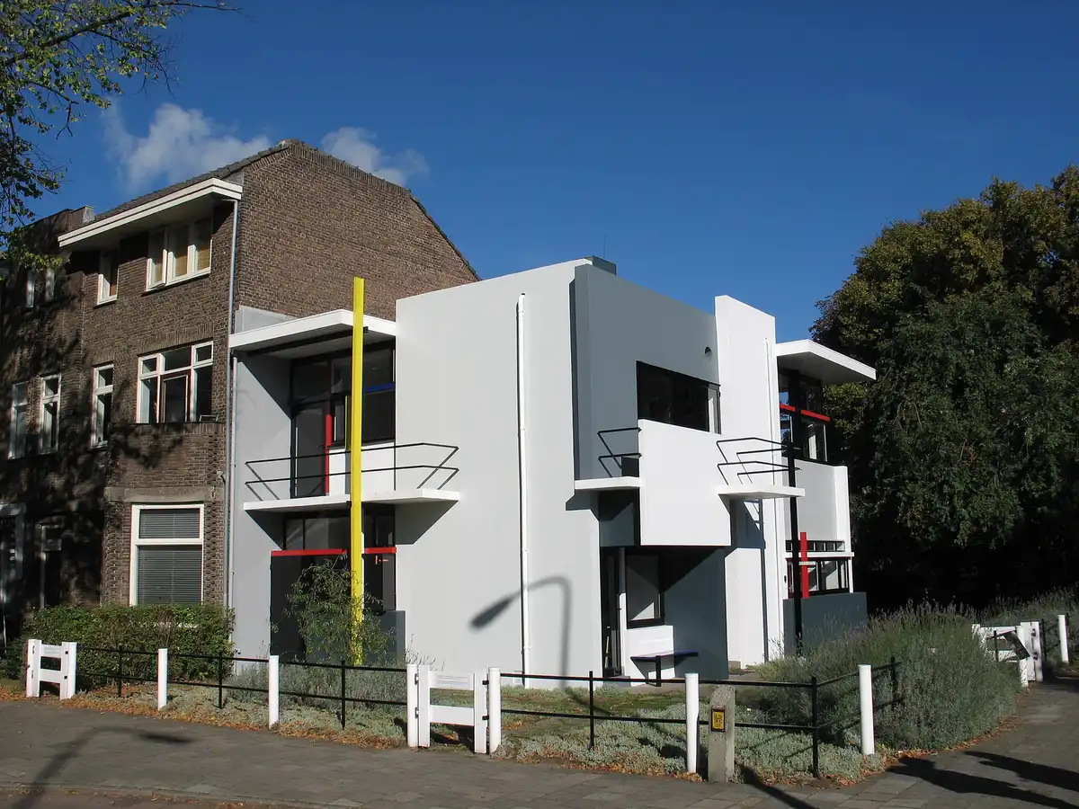 De Stijl architectural masterpiece. 20th Century Netherlands home design by Gerrit Rietveld Architect