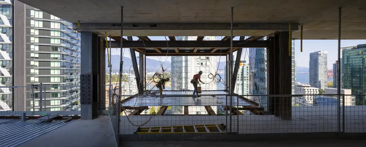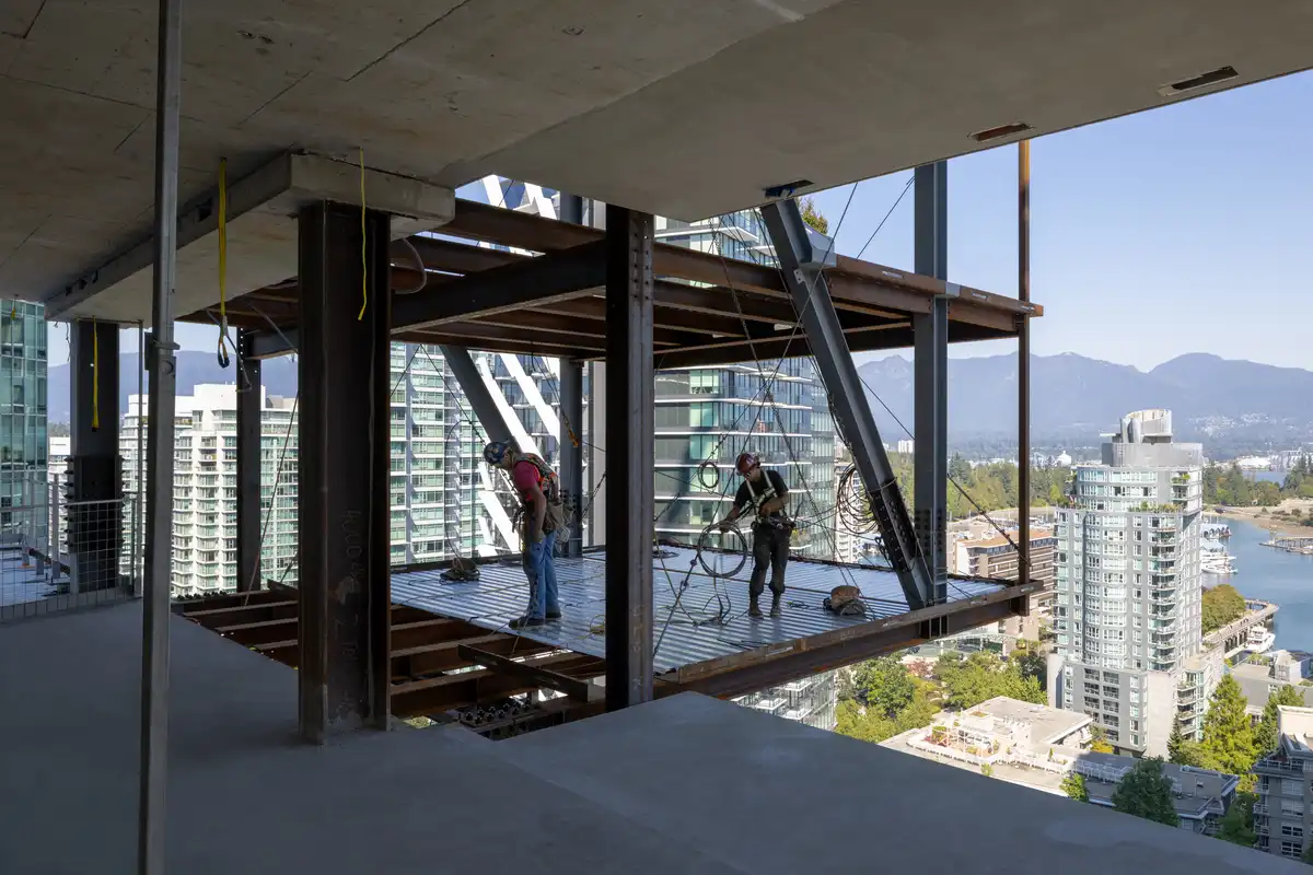 This entailed the on-site assembly of the structural steel components, followed by their lift into final position. Developed by Bosa Properties and Kingswood Properties, the 42-storey residential tower introduces a sculptural form to Vancouver’s skyline, defined by bold cantilevers that project outward from the tower creating panoramic views of the city.